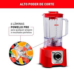 Liquidificador Arno LN63 Power Max San Cristal - 15 Velocidades + Pulsar, 3,1 Litros, 1400W, Vermelho - 110V