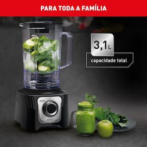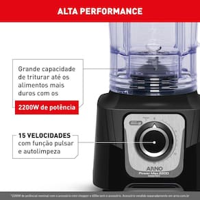 O liquidificador Arno Power Max 2200W* Limpa Fácil conta com grande potência com 2200W*, combinada as 4 poderosas lâminas Powelix, garantindo eficiência no preparo.
