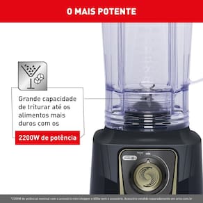 *2200W de potência nominal com o acessório mini chopper e 650W sem o acessório. Acessório vendido separadamente em Arno.com.br