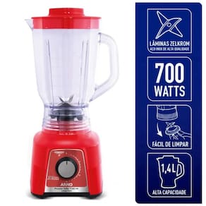 Características: Marca: Arno Modelo: Power MIX LQ34 Tipo: Liquidificador Velocidades: 15 velocidades Capacidade útil: 1,4 litros Material do copo: SAN Tipo de lâminas: Lisas Material das lâminas: Aço inox Potência: 700W Frequência: 60 Hz Inmetro: Sim