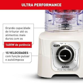Alta Potência: Motor de 1400W, capaz de triturar ingredientes mais duros com facilidade, garantindo alta performance em diferentes preparos.