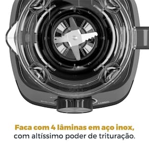 Conta com 4 velocidades e funções especiais como Pulsar, Ice e Autolimpeza, garantindo controle total no preparo e facilidade na hora da limpeza. Sua potência de 1100W oferece desempenho robusto para misturas homogêneas, mesmo com ingredientes mais duros.