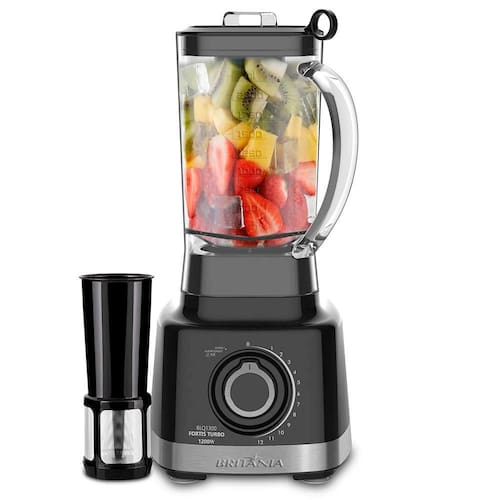 O Liquidificador Britânia Blq1300p Fortis Turbo além de lindo tem tecnologia pro maxx 6, com 6 lâminas de altíssimo poder de trituração para texturas mais homogêneas. Além de turbo, com mais força em seu funcionamento aliando às 12 velocidades e 1200w de potência, não deixa pedaços para trás. Jarra transparente com capacidade de até 3 litros e filtro que separa semente e bagaço.Sobre tampa dosadora, com graduação, para não esquecer nenhum ingrediente na medida certa da receita. Prepare vitaminas, sucos, molhos, sopas e tudo mais que sua imaginação permitir. Liquidificador Britânia é sinônimo de praticidade e qualidade. Características: - 12 velocidades + função ice + função pulsar + função autolimpeza - Sobretampa dosadora tipo xícara - 6 lâminas - Copo de plástico com capacidade total 3L - Capacidade útil de 2L - Tampa com alça na lateral para retirada - Base antiderrapante - Embutidor de cordão Especificações técnicasMarca: BritâniaModelo: Blq1300p Voltagem: 110VPotência: 1200WConsumo: 1,20 kw/hComposição: Metal e plásticoMedidas: 20,5 x 42,3 x 22,3 cmPeso: 2,46 KgGarantia: 12 mesesAcompanha: Manual de instruçõesSobre a BritâniaFundada em 1956 em Curitiba, a Britânia se consolidou como uma das principais marcas de eletroportáteis e eletroeletrônicos do Brasil e é a empresa que mais cresce no país nesses segmentos. Presente na maioria dos lares brasileiros com produtos de qualidade reconhecida, está constantemente se renovando para que seus consumidores encontrem em uma só marca, todas as soluções.