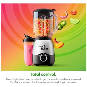 O copo de mistura pessoal é ideal para preparar smoothies, shakes e outras delícias individuais, e pode ser levado para qualquer lugar, basta girar a tampa para viagem. O Liquidificador Combo Magic Bullet oferece três opções de velocidade: alta, baixa e pulsação, para alcançar a consistência perfeita para smoothies cremosos, salsas mais grossas e muito mais.