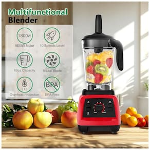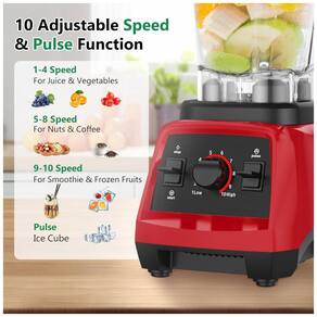 Liquidificador de Bancada Profissional 2L com 10 Velocidades para Smoothies e Receitas de Cozinha, 110V 1800W, JUSANTE, Vermelho