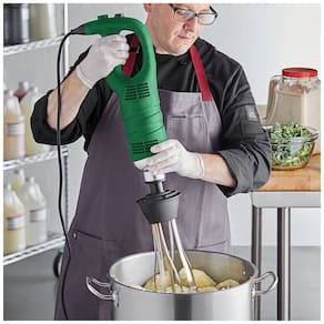 Com dois batedores de aço inoxidável de 25,4 cm, ideal para sopas, molhos, purê de batatas ou mousses. Possui velocidade variável de 8000 a 18000 RPM para triturar, bater e emulsionar. Conta com botão de travamento para funcionamento contínuo sem as mãos. Seu potente motor de 1,27 cv oferece excelente potência de mistura. Unidade versátil que aceita hastes AvaMix 1021 e acessório de batedor 10. Este liquidificador de alta performance é essencial para cozinhas comerciais, permitindo misturar, bater ou emulsificar alimentos com facilidade.