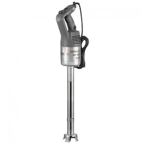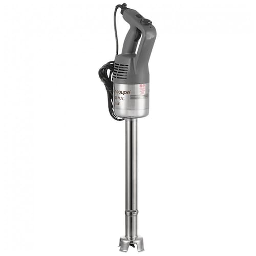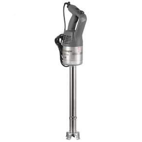 Liquidificador de imersão industrial com 18 velocidades variáveis, motor de 1,095 CV e 720W, capaz de atingir até 10.000 RPM. Haste de 45,72 cm. Ideal para processar até 100 litros. Sistema de autorregulação de velocidade. Empunhadura ergonômica. Lâmina e sino em aço inoxidável. Caixa de engrenagens em metal.Acompanha copo
