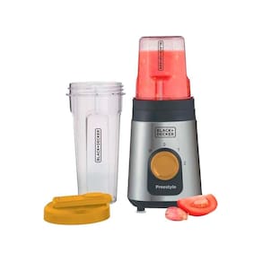 Prepare sucos, vitaminas e molhos com muito mais estilo e facilidade com o liquidificador LP320 Freestyle da BLACK+DECKER! Compacto e prático, seu tamanho reduzido permite que seja guardado facilmente em qualquer cantinho. Ele acompanha duas jarras, uma de 300 ml e outra de 600 ml, além de 2 tampas com vedação e bocal para consumo direto nas jarras.