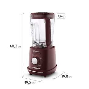 O produto funciona em cinco velocidades e vem com 4 receitas predefinidas para maior precisão no preparo de bolos, massas, sucos e vitaminas. É equipado com uma jarra de plástico ultrarresistente, livre de Bisfenol A, com design ergonômico e uma generosa capacidade total de 2,7 litros.