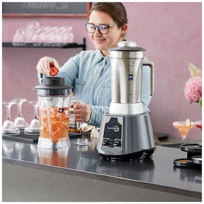 Com controles de alternância para operação simples, o botão de pulso permite mistura precisa. O motor de 2 hp oferece resultados consistentes e bem misturados em segundos. Suas lâminas de aço inoxidável de alta resistência preparam smoothies e muito mais em segundos. Acompanha 1 jarra de 1,89 Litros livre de BPA, 1 jarra de aço inoxidável de 1,89 Litros, soquete e tampa de 2 peças. Alto desempenho e qualidade. Com seu motor de 2,03 cv e 1500W, este liquidificador fornece a potência necessária para triturar gelo, preparar drinques, smoothies, molhos caseiros ou salsa. Ótimo para servir bebidas refrescantes em um bar de sucos ou smoothies ou preparar drinques em um pub ou restaurante. Este liquidificador requer uma conexão elétrica de 110V. A operação é simples, com um interruptor de alternância com configurações Alta, Baixa e Desligado, facilitando a operação para funcionários de todos os níveis de habilidade. O liquidificador possui uma base de plástico ABS elegante e resistente, proporcionando durabilidade em ambientes comerciais e sendo fácil de limpar. Possui também um botão de pulso para acionar a máxima velocidade, além de acompanhar soquete para adicionar ingredientes durante o processo. A jarra de plástico Tritan de 1,89 Litros oferece durabilidade máxima e espaço para grandes porções.