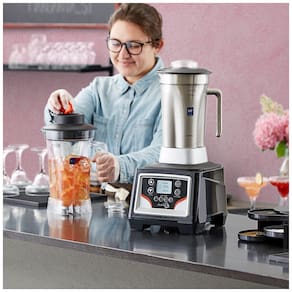 O Liquidificador Comercial AvaMix BX2100ES é um verdadeiro gigante de 3,55 cv, com motor de 26.000 RPM e 1800W, ideal para esmagar gelo facilmente. Seu controle por touchpad salva as configurações de velocidade e tempo após cada uso, garantindo resultados consistentes. Com lâminas de aço inoxidável de alta resistência, ele prepara smoothies em segundos, sendo perfeito para bares movimentados. Vem com uma jarra de 1,89 Litros livre de BPA, uma jarra de aço inoxidável de 1,89 Litros, soquete e tampa de duas peças. Com três configurações de velocidade e timer de até 15 minutos, é versátil e prático para diferentes receitas. A base de plástico ABS é robusta e fácil de limpar, enquanto a jarra de plástico Tritan de 1,89 Litros é durável e ideal para volumes grandes.