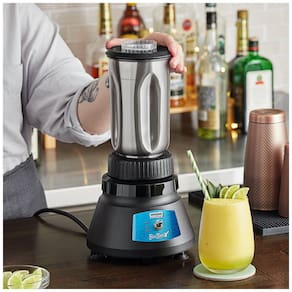Com um motor potente de 1/2 hp, este liquidificador comercial Waring BB145S BevBasix irá ajudá-lo a criar smoothies de frutas perfeitos, drinques gelados e bebidas alcoólicas rapidamente e facilmente! Possui um interruptor de alternância fácil de usar para operar as 4 lâminas afiadas de aço inoxidável em 3 velocidades: ALTA, BAIXA e DESLIGADO. O corpo durável combina com pés de sucção confiáveis para máxima estabilidade. Acompanha um recipiente de aço inoxidável de 0,94 Litros, recomendado para preparações leves de bebidas. Ideal para bares, este liquidificador versátil pode triturar gelo, fazer mergulhos, molhos, sopas, smoothies e muito mais. Requer uma conexão elétrica de 110V.