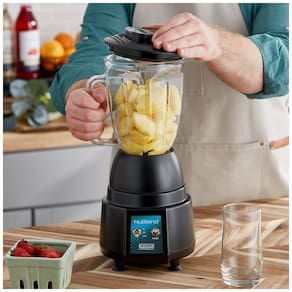 O liquidificador comercial Waring BB180X torna rápido e fácil criar smoothies de frutas, drinks congelados e outras delícias! Possui um potente motor de 34 hp e 2 velocidades para operação eficiente. Fácil de operar com interruptores simples de alta, baixa, desligado e pulso. A lâmina potente mistura seus ingredientes em uma obra-prima, sendo ideal para drinks congelados, triturar gelo, fazer molhos, dips e sopas. Possui construção durável e leve com pés de sucção resistentes. A lâmina é removível para facilitar a limpeza. Recomendado para 1 a 25 ciclos por dia, sendo ideal para preparo leve de bebidas. Vem com um recipiente de policarbonato de 1,30 Litros praticamente inquebrável. A tampa de duas peças permite adicionar ingredientes ao liquidificador durante qualquer etapa do processo. Este liquidificador é uma ótima escolha para bares, restaurantes e qualquer estabelecimento que necessite de bebidas misturadas sob demanda. Este modelo de 400 watts requer uma conexão elétrica de 110V para operação.