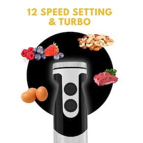 - 12 velocidades + turbo boost: encontre a velocidade certa para cada tarefa de mistura. Além disso, você pode aumentar lentamente a velocidade para uma melhor consistência de mistura e evitar bagunça. Para passar por tarefas difíceis de misturar, o botão TURBO aumenta o liquidificador para sua velocidade máxima