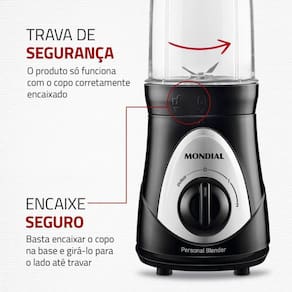 - VIDA SAUDÁVEL + PRATICIDADE: Com a correria da rotina diária, costuma ser um desafio seguir uma alimentação saudável, né? Com o Blender Mondial, você pode preparar sucos naturais, vitaminas ou suplementos de forma rápida e prática, e carregar com você para onde for! Muito mais fácil para manter os bons hábitos alimentares! Atenção: para funcionamento do produto, girar o copo para desativar a trava de segurança.