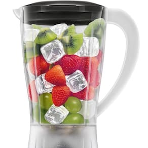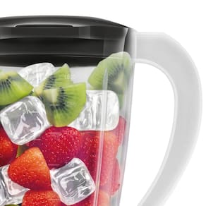 Copo inquebrável e transparente: Durabilidade e facilidade na visualização dos ingredientes durante o preparo.
