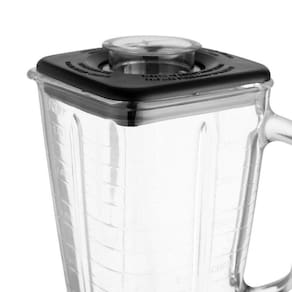 A jarra possui 1,25 litros, produzida em vidro que resiste altas temperaturas e alimentos mais duros, o acople metálico All Metal Drive é forte e oferece mais durabilidade ao produto, a lâmina tritura com eficiência todo tipo de alimento, inclusive gelo.