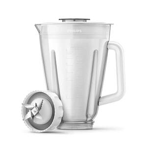 - Potência: 1200W + Função Pulsar; - Lâmina removível; - Função tritura gelo; - 05 Velocidades; - Design moderno e inovador na cor branca; - Jarra tamanho família com capacidade de até 3 Litros; - Bico extra largo: facilita no escoamento; - Função maionese: permite despejar o óleo gradualmente; - Fácil de manusear; - Fácil de limpar; - Seguro para lava-louças: exceto a unidade principal e o conjunto de lâminas; - Tecnologia exclusiva ProBlend com 6 Lâminas; - Pés de borracha antideslizantes; - Alta capacidade de volume: para todos os tamanhos de receitas; - Desenvolvido para garantir potência, durabilidade e máxima perfomance; - 0% BPA;