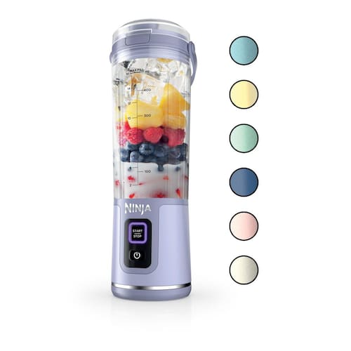 Recipiente, liquidificador pessoal para batidos e smoothies, sem BPA, tampa à prova de vazamentos e bico, recarregável por USB-C, peças laváveis na máquina de lavar louça, lavanda, BC151ML — NINJA BLENDING ANYWHERE: misture ingredientes congelados com o melhor poder de mistura portátil da Ninja. Faça bebidas perfeitamente suaves em qualquer lugar que você vá.
