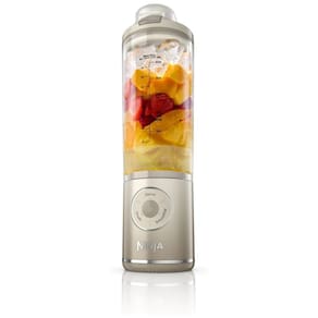Conheça o Ninja Blast Max, um liquidificador sem fio com desempenho de um liquidificador com fio. Com a tecnologia Ninja Powerblast, você pode misturar e triturar ingredientes congelados e gelo de qualquer lugar. O Ninja Blast Max possui 3 novos programas inteligentes Auto IQ misturar, triturar e bater, que oferecem resultados perfeitos com o toque de um botão. Além disso, você pode remover o recipiente facilmente para transporte mais leve e degustação conveniente. A capacidade de mistura XL permite criar até 0,78 gramas dos seus smoothies favoritos, bebidas congeladas, shakes de proteína e muito mais. A tampa para gole integrada e a alça de silicone permitem que você leve o recipiente facilmente para qualquer lugar. O indicador de vida útil da bateria fornece uma leitura em tempo real sobre quando uma carga é necessária e a base recarregável oferece o maior tempo de execução de mistura de qualquer liquidificador sem fio. O Ninja Blast Max também é fácil de limpar, já que a tampa e o recipiente com Crushblade integrado podem ser lavados na máquina de lavar louça e o liquidificador pode ser autolimpante com um ciclo de mistura usando água e uma gota de detergente. O pacote inclui a base motor recarregável 11,1 V, o recipiente Twist Go com CrushBlade integrado, a tampa EasyOpen Sip com alça de transporte, o cabo de carregamento e o guia de inspiração com 5 receitas.