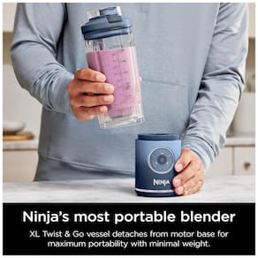 Apresentamos o Ninja Blast Max, um liquidificador sem fio que oferece o mesmo desempenho de um modelo com fio. Com tecnologia Powerblast, é possível misturar e triturar gelo e frutas congeladas em qualquer lugar. O produto conta com 3 programas inteligentes Auto IQ para misturar, triturar e bater. Com um simples giro, é possível remover o recipiente para torná lo mais portátil e leve. O recipiente Twist Go é destacável, 50 mais leve do que aqueles com bases de motor acopladas e possui capacidade de até 0,78 gramas. Além disso, o liquidificador conta com uma tampa para gole integrada e alça de silicone para transporte fácil. O indicador de vida útil da bateria fornece uma leitura em tempo real sobre quando é necessário carregar, e a base recarregável oferece o maior tempo de execução de mistura de qualquer liquidificador sem fio. O produto é fácil de limpar, podendo ser lavado na máquina de lavar louça ou autolimpado com um ciclo de mistura usando água e uma gota de detergente. O kit inclui o motor recarregável, recipiente Twist Go com CrushBlade integrado, tampa EasyOpen Sip com alça de transporte, cabo de carregamento e guia de inspiração com 5 receitas.