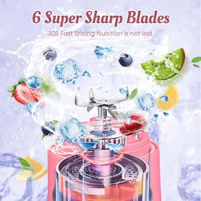 - ?Recarregável por USB e ótima portabilidade? Liquidificador portátil sem BPA com bateria recarregável integrada que serve até 25 xícaras de bebidas e pesa apenas 600 g para facilitar o transporte. Um design de um botão e 6 lâminas de aço inoxidável tornam a mistura rápida e fácil, enquanto a capacidade de bateria dupla oferece 3 vezes mais energia do que os liquidificadores tradicionais.