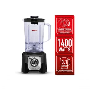 Máxima Potência para Resultados PerfeitosLiquidificador Arno Powermax 1400W Preto LN65Garanta o melhor desempenho no preparo de suas bebidas e receitas preferidas com o novo Liquidificador Arno Power Max Comfort, com uma capacidade de 3,1L, 1400W e um switch comfort de velocidade contínua. O liquidificador Arno Powermax 1400W conta com incrível potência (1400W) combinada com as 6 lâminas Powelix Pro, o que tornará o seu preparo super rápido e perfeito! Além disso, o produto conta com uma tecnologia exclusiva de controle de velocidades Comfort Control e design e qualidade Arno *Imagens meramente ilustrativas. CorPretoPotência (Watts)1400W de potênciaConsumo (kW/h*/mês)42 kW/h*/mêsGarantia1 anoTipo de MaterialPP + Copo em SANComp. Cabo (m)75 cmVelocidade de Rotação15ClaimMáxima Potência para Resultados Perfeitos