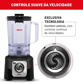 Equipado com a exclusiva tecnologia Comfort Control, este liquidificador proporciona total controle sobre a velocidade e a textura dos preparos. Com diversas opções de ajustes, é possível alcançar o ponto ideal para smoothies, sopas, molhos e outras receitas.