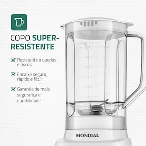 COPO SUPER-RESISTENTEO copo do liquidificador Pratic Power é super-resistente a quedas e riscos, garantindo mais e durabilidade. Além disso, seu design possui encaixe , rápido e fácil.