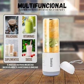 o mini liquidificador é um equipamento portátil de alta qualidade e possui design compacto, com 60w de potência e 6 lâminas fortes que garantem uma mistura eficiente e rápida de diversos ingredientes. Seu copo de vidro borossilicato 330ml e tampa protetora com vedação de silicone garantem que ele não vaze durante o transporte e permitem que você leve suas bebidas favoritas para onde quiser, seja para o trabalho, academia, viagem ou simplesmente para o seu dia a dia. Esse mini liquidificador é ideal para fazer sucos, vitaminas, suplementos e outras bebidas saudáveis e deliciosas em poucos minutos, sem precisar de muito espaço na cozinha, você pode fazer uma variedade de bebidas deliciosas. Sua praticidade e facilidade de uso tornam-no uma ótima escolha para quem busca uma vida saudável e ativa, sem abrir a mão da praticidade e do sabor. Além de poder triturar ingredientes para preparar diversas receitas. A facilidade de uso e a portabilidade deste mini liquidificador o tornam um equipamento indispensável em sua rotina, permitindo que você desfrute de bebidas saudáveis e nutritivas em qualquer. ------------------