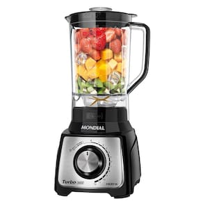 O Liquidificador Mondial Turbo Inox prepara suas receitas com muito mais eficiência. As 6 lâminas de titânio oferecem resistência superior e um poder de corte que transforma até os ingredientes mais duros em misturas homogêneas em poucos segundos. Além disso, a alta potência de 1.400W entrega desempenho constante no preparo de diferentes receitas, enquanto o copo de 3 litros, com encaixe fácil, agiliza o uso e permite preparar porções maiores sem complicação.