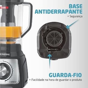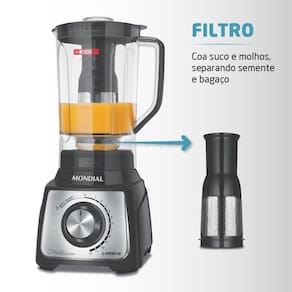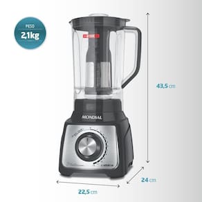 Liquidificador Mondial Turbo Platinum L-1200-pi Liquidificador L-1200-pi 220v/60hz . SUPERPOTÊNCIA: 1.200W para misturar ou triturar alimentos com mais agilidade; CAPACIDADE TOTAL ALTA: São 3 litros para preparar sucos, vitaminas, molhos, entre outros; 12 VELOCIDADES + PULSAR/GELO: Escolha a velocidade ideal para alcançar a textura perfeita; LÂMINAS SERRILHADAS: São 4 lâminas serrilhadas e 2 lisas, em aço Inox, e com alto poder de trituração; RESISTENTE: O copo é feito de San Cristal, material resistente a quedas e riscos, supertransparente e que não pega cheiro ou cor; COM FILTRO EM INOX: Permite que sucos e molhos fiquem prontos sem semente ou bagaço. Modelo - L-1200 PI Cor - Grafite/Inox Voltagem (Tensão) - 110v / 220v Itens inclusos - 01 Liquidificador; 01 Filtro e 01 Manual de instruções Material do copo - Copo em San Cristal Capacidade (Total) - 3L Capacidade (Útil) - 2,1L Potência - 1200W Velocidades - 12 Função pulsar - Sim Função auto-limpeza - Sim Filtro - Sim Dimensões do produto - 44cm x 22cm x 22,50cm (AxLxP) Peso do produto - 2,30Kg Garantia - 1 Ano