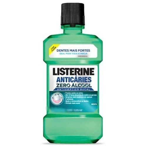 Listerine Anticáries Zero Enxaguante Bucal 250ml DESCRIÇÃO: Listerine Anticáries Zero Álcool é um antisséptico bucal que mata até 99% dos germes e bactérias que causam placa, gengivite e mau hálito, deixando os dentes 2x mais fortes. Sabor menta. Listerine Anticáries Zero Álcool oferece uma higiene bucal completa para toda a família.AÇÃO/ATIVOS: Previne conta as cáries. Até 12 horas de proteção contra os germes. Gengivas mais saudáveis em 2 semanas. Ajuda a remineralizar os dentes. Fórmula mais suave.MODO DE USAR: Para maiores de 12 anos faça bochechos com 20 ml de Listerine Anticáries Zero Álcool por 30 segundos, após a escovação e uso de fio dental pela manhã e à noite; e de 6-12 anos utilize 10ml por 30 segundos, após a escovação pela manhã e à noite. Não diluir. Para abrir: Retire o lacre de segurança, pressione os dois lados da tampa (indicados pelo nome Listerine) e gire conforme mostra o desenho. Para fechar: Gire a tampa até travar.ESTE ANÚNCIO CONTÉM: 01 Listerine Anticáries Zero Enxaguante Bucal 250mlListerine AnticÃries Zero Enxaguante Bucal 250ml