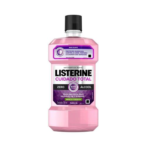 Listerine Cuidado Total Zero Enxaguante Bucal 250ml DESCRIÇÃO: LISTERINE Cuidado Total Zero? é uma ótima opção para complementar a higiene bucal pois promove uma boca mais saudável em apenas 2 semanas.AÇÃO/ATIVOS: Os 6 benefícios do CUIDADO TOTAL ZERO: Ajuda na prevenção da cárie. Fortalece o esmalte dental. Previne a placa bacteriana. Gengivas mais protegidas. Reduz a formação de tártaro. Hálito fresco.MODO DE USAR: Para maiores de 12 anos faça bochechos com 20 ml de Listerine Anticáries Zero Álcool por 30 segundos, após a escovação e uso de fio dental pela manhã e à noite. Não diluir. Para abrir: Retire o lacre de segurança, pressione os dois lados da tampa (indicados pelo nome Listerine) e gire conforme mostra o desenho. Para fechar: Gire a tampa até travar.ESTE ANÚNCIO CONTÉM: 01 Listerine Cuidado Total Zero Enxaguante Bucal 250mlListerine Cuidado Total Zero Enxaguante Bucal 250ml