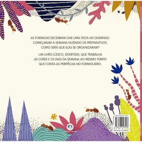 As formigas decidiram dar uma festa no domingo. Começaram a semana fazendo os preparativos. Como será que elas se organizaram Um livro lúdico, divertido, que trabalha as cores e os dias da semana ao mesmo tempo que conta as peripécias no formigueiro.