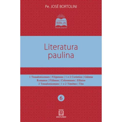 Aproximar as pessoas da Palavra de Deus, eis o objetivo da Coleção “Conheça a Bíblia. Estudo popular”. Esse sexto volume ajuda-nos a conhecer a grande obra do Apóstolo São Paulo, comumente chamada de Literatura Paulina. São 13 escritos que possuem forma epistolar (de Cartas): 1 e 2 Tessalonicenses, Filipenses, 1 e 2 Coríntios, Gálatas, Romanos, Filêmon, Colossenses, Efésios, 1 e 2 Timóteo e Tito. Ean: 9788536905709