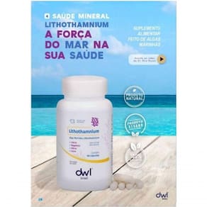 LITHOTHANIUM 90 cápsulas INFORMAÇÃO NUTRICIONAL: PORÇÃO DE 3 G. VALOR ENERGÉTICO 0 KCAL / KJ (- %VD); CÁLCIO 960 MG (96 %VD); MAGNÉSIO 75 MG (30 %VD); FERRO5,0 MG (36 %VD); SILÍCIO 19,5 MG (- %VD). NÃO CONTÉM QUANTIDADES SIGNIFICATIVAS DE CARBOIDRATOS, PROTEÍNAS, GORDURAS TOTAIS, GORDURAS SATURADAS, GORDURAS TRANS, FIBRA ALIMENTAR E SÓDIO. (*) % VALORES DIÁRIOS COM BASE EM UMA DIETA DE 2.000 KCAL E 8.400 KJ. SEUS VALORES DIÁRIOS PODEM SER MAIORES OU MENORES, DEPENDENDO DE SUAS NECESSIDADES ENERGÉTICAS. ; RECOMENDAÇÕES DE USO: INGERIR UMA CÁPSULA TRÊS VEZES AOS DIA, COM BASTANTE LÍQUIDO E, PREFERENCIALMENTE, DE ESTÔMAGO VAZIO. ; INGREDIENTES: ALGA MARINHA DO GÊNERO LITHOTHAMNIUM E CÁPSULAS VEGETAIS. NÃO CONTÉM GLÚTEN ALÉRGICOS: PESSOAS ALÉRGICAS A PEIXES E CRUSTÁCEOS SÓ DEVEM CONSUMIR SOB ACOMPANHAMENTO MÉDICO. ; CONSERVAR AO ABRIGO DE LUZ, CALOR E UMIDADE. ; ESTA EMBALAGEM FOI SELADA PARA SUA PROTEÇÃO. NÃO UTILIZE O PRODUTO EM CASO DE VIOLAÇÃO. ; ESTE PRODUTO NÃO É INDICADO PARA GESTANTES, NUTRIZES (MÃES QUE AMAMENTAM) E CRIANÇAS. CONSUMIR PREFERENCIALMENTE SOB ORIENTAÇÃO DE MÉDICO OU NUTRICIONISTA. ; O USO DESTE PRODUTO NÃO SUBSTITUI CUIDADOS DO PROFISSIONAL DE SAÚDE DE SUA CONFIANÇA.