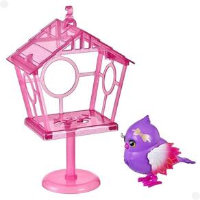 Little live pets lil bird ligável com +20 sons reação - fun Cor: casinha rosa passaro roxo Descrição do produto