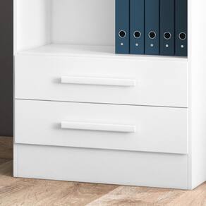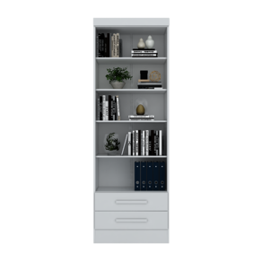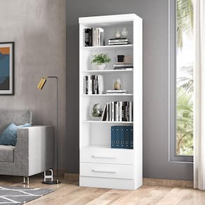 Descrição Com um design contemporâneo, o Livreiro com 2 Gavetas é ideal para compor a decoração de diversos ambientes. Suas prateleiras móveis, permitem regular o espaço e acomodar objetos maiores. O produto ainda inclui gavetas com excelente profundidade, levando funcionalidade e praticidade para organização do espaço. Seu sistema anti-tombamento, garante segurança para evitar riscos de acidentes. Características • Prateleiras móveis para melhor organização do ambiente; • Gavetas com corrediças metálicas e excelente profundidade; • Puxadores em MDF resistentes e com alto padrão de acabamento; • Produto multifuncional, podendo ser utilizado em diversos espaços; • Ideal para colocação de livros e objetos decorativos; • Embalagem feita com papelão revestido por plástico, com isomanta e com BUP's (proteção de cantos) para garantir a qualidade do produto; • Excelente acabamento revestido em pintura UV, que dá maior destaque à cor; • Sistema anti-tombamento para evitar riscos de acidentes; • Estrutura produzida com materiais de alta qualidade. Cuidados com o produto Não utilize produtos químicos ou abrasivos para limpar seus móveis. A manutenção em geral, exige apenas a retirada do pó com um pano seco. Mas, a limpeza também pode ser feita utilizando um pano levemente umedecido com água e/ou álcool. Em seguida, a superfície deve ser seca com a ajuda de um pano limpo e macio. Não expor o produto diretamente à luz solar. Sistema de montagem Para a montagem do produto, consulte o esquema de montagem incluso na embalagem. Tempo médio de montagem: 60 min