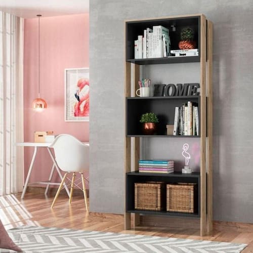 Livreiro Com Nicho Preto Fosco/chumbo Toq
