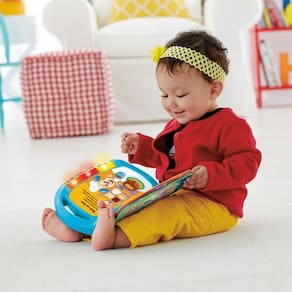 Vire a página e ouça 6 canções: A dona aranha, O barquinho, Feira dos animais, bata um bolo, rato arteiro e um, dois, feijão com arroz! Enquanto isso, o bebê aprende a contar, as primeiras palavras, letras, números, formas e muito mais é muita diversão e aprendizado! São 3 botões que acendem ensinando letras, números e formas, além de suas páginas fáceis de virar ajudam a desenvolver a coordenação motora fina e a alça facilita na hora de carregar. Funciona com 2 pilhas AA (R6) 1,5v.