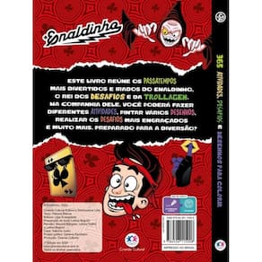 Livro: 365 Ativ., Desafios E Desenhos Para Colorir - Enaldinho Este livro reúne os passatempos mais divertidos e irados do Enaldinho: o rei dos DESAFIOS e da TROLLAGEM. Na companhia dele, você poderá fazer diferentes atividades, pintar vários desenhos, realizar os desafios mais engraçados e muito mais. Preparado para a diversão