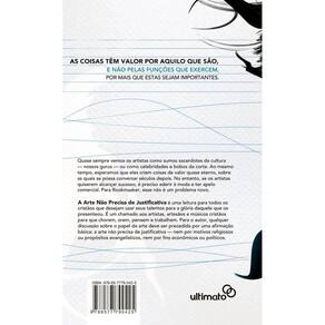 A arte não precisa de justificativa é uma leitura para todos os cristãos que desejam usar seus talentos para a glória daquele que os presenteou. É um chamado aos artistas, artesãos e músicos cristãos para que chorem, orem, pensem e trabalhem.