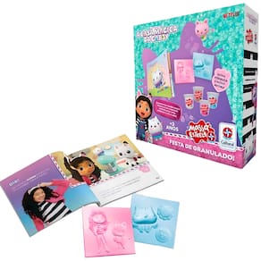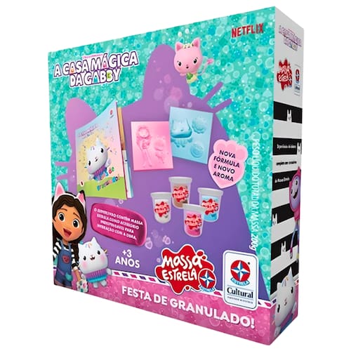 O Livro A Casa Mágica da Gabby com Massa Estrela acompanha um livro com uma história exclusiva da turma da Gabby, além da Massa Estrela