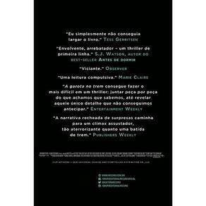 Livro A Garota No Trem - Capa Do Filme Paula Hawkins Todas as manhãs Rachel pega o trem das 8h04 de Ashbury para Londres. O arrastar trepidante pelos trilhos faz parte de sua rotina. O percurso, que ela conhece de cor, é um hipnotizante passeio por galpões, caixas d'água, pontes, casebres e aconchegantes casas vitorianas. Em determinado trecho, o trem para no sinal vermelho. E é de lá que Rachel observa diariamente a casa de número 15. Obcecada com seus belos habitantes - a quem chama de Jess e Jason -, Rachel é capaz de descrever o que imagina ser a vida perfeita do jovem casal. Até testemunhar uma cena chocante, segundos antes de o trem dar um solavanco e seguir viagem. Poucos dias depois, ela descobre que Jess - na verdade Megan - está desaparecida. Sem conseguir se manter alheia à situação, ela vai à polícia e conta o que viu. E acaba não só participando diretamente do desenrolar dos acontecimentos, mas também da vida de todos os envolvidos. Uma narrativa extremamente inteligente e repleta de reviravoltas, A garota no trem é um thriller digno de Hitchcock a ser compulsivamente devorado. Detalhes do produto: Capa comum: 378 páginas Editora: Record, Edição: 1 16 de setembro de 2016 Idioma: Português ISBN-10: 850107568X ISBN-13: 978-8501075680 Dimensões do produto: 22,8 x 15,4 x 2,6 cm Peso de envio: 440 g Garantia Contra Defeitos de Fabricação Ean: 9788501075680