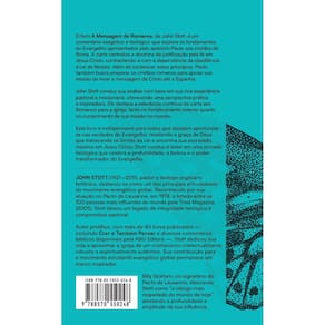 John stott conhece profundamente todo o texto da mensagem de romanos, bem como os temas abordados nesta epístola. Mas, o que é mais importante, ele vê romanos sob uma perspectiva modelada pela experiência pastoral e missionária - uma perspectiva modelada pela grande visão do apóstolo paulo.
