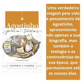 Stephen Cooper nos conduz de maneira primorosa ao complexo mundo do pensamento de Agostinho e nos surpreende com a constatação de que as questões aparentemente remotas e alheias do teólogo ainda são as mesmas para nós hoje. Agostinho para Todos apresenta nas entrelinhas a riqueza do conhecimento contemporâneo sobre esse teólogo ocidental de vanguarda e a estatura de sua visão espiritual.” – Thomas F. Martin, Departamento de Teologia e Estudos Religiosos, Villanova University Agostinho Para Todos é uma obra acadêmica e, ao mesmo tempo, acessível. Stephen Cooper combina os conhecimentos de um especialista em Agostinho com uma sólida compreensão das questões mais profundas de sua época. O resultado é um esplêndido panorama da vida e do pensamento de Agostinho, o qual recomendo com entusiasmo. – David G. Hunter, professor de estudos religiosos, Universidade Estadual de Iowa Agostinho Para Todos encerra a lacuna entre o mundo de Agostinho e o nosso, traçando paralelos úteis que vão de educação aos dilemas morais com os quais nos deparamos na vida diária. Os teólogos de plantão serão motivados, após a leitura deste livro, a se aprofundar ainda mais na vida e no pensamento de uma personalidade fascinante. – Eugene Teselle, professor emérito de teologia e história da igreja, Vanderbilt Divinity School