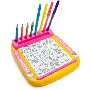 O Meu Primeiro Kit de Pintura Hello Kitty Leo é um produto ideal para acompanhar a criança em passeios, restaurantes e demais locais, pois o suporte funciona como uma mesinha para as atividades.