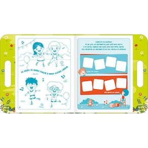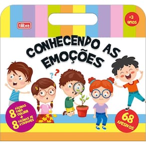 A maleta de atividades "Emoções" tem como objetivo trabalhar a identificação das emoções, oferecer consciência sentimental e ensinar o autoconhecimento por meio de brincadeiras divertidas. O produto, em tamanho 19 x 25 cm, tem 8 folhas e cartela de adesivos interativa com as atividades.