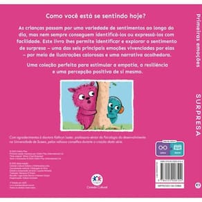 Como você está se sentindo hoje As crianças passam por uma variedade de sentimentos ao longo do dia, mas nem sempre conseguem identificá-los ou expressá-los com facilidade. Este livro lhes permite identificar e explorar o sentimento de surpresa - uma das seis principais emoções vivenciadas por elas - por meio de ilustrações calorosas e uma narrativa acolhedora. Uma coleção perfeita para estimular a empatia, a resiliência e uma percepção positiva de si mesmo.